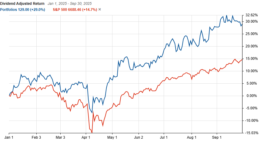 At 29% gain YTD, the portfolio has returned close to twice the market returns..